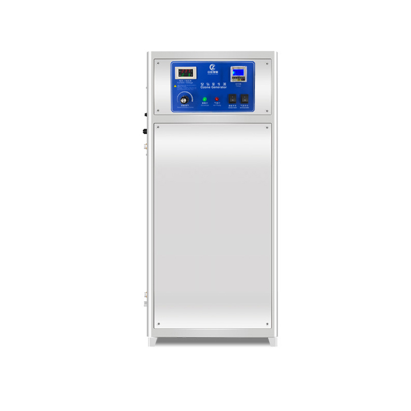 1、臭氧發生器為箱體式一體機,將氣源、氣源過濾系統、臭氧放電室、電源控制板、及其它附件等安裝在一個機箱內;